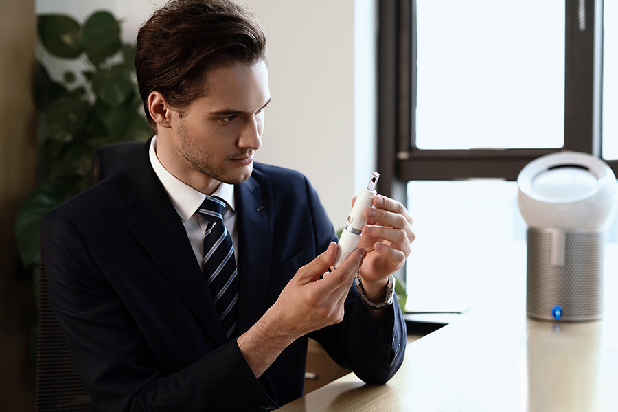 QS-P er önnur kynslóð nálarlausra sprautna á eftir QS-M, hönnunarhugmyndin er flytjanleg og mjög auðveld í notkun í vasa eða litla tösku. Önnur hugmyndafræði þessarar hönnunar er létt, þyngd QS-P er innan við 100 grömm. Quinovare vonast til að börn eða aldraðir geti notað það sjálf. Aðgerðir með QS-P sprautunni eru þægilegar í notkun; fyrst er tækið hlaðið, síðan er lyfið dregið út, skammturinn valinn og í þriðja lagi er lyfinu sprautað inn. Þessi skref er hægt að læra á 10 mínútum. Aðrir nálarlausir sprautar samanstanda af tveimur mismunandi hlutum, sprautunni og þrýstikassanum (endurstillingarkassi eða hleðslutæki). Hvað varðar QS-P er þetta alhliða sprautuhönnun, þannig að hún er þægilegri í notkun. Þriðja hugmyndafræðin um hönnun er hlýja, flestir finna fyrir kulda eða sársauka eða eru hræddir við nálar, við reyndum okkar besta til að hanna sprautuna okkar þannig að hún líti hlý út og líti ekki út eins og sprauta. Við vildum að viðskiptavinir gætu notað sprautuna þægilega og fundið fyrir öryggi í hvert skipti sem þeir nota hana. Vegna eiginleika sinna og hönnunar hlaut QS-P verðlaunin Good Design Award árið 2016, Golden Pin Design Award árið 2019 og Red Star Design Award árið 2019.